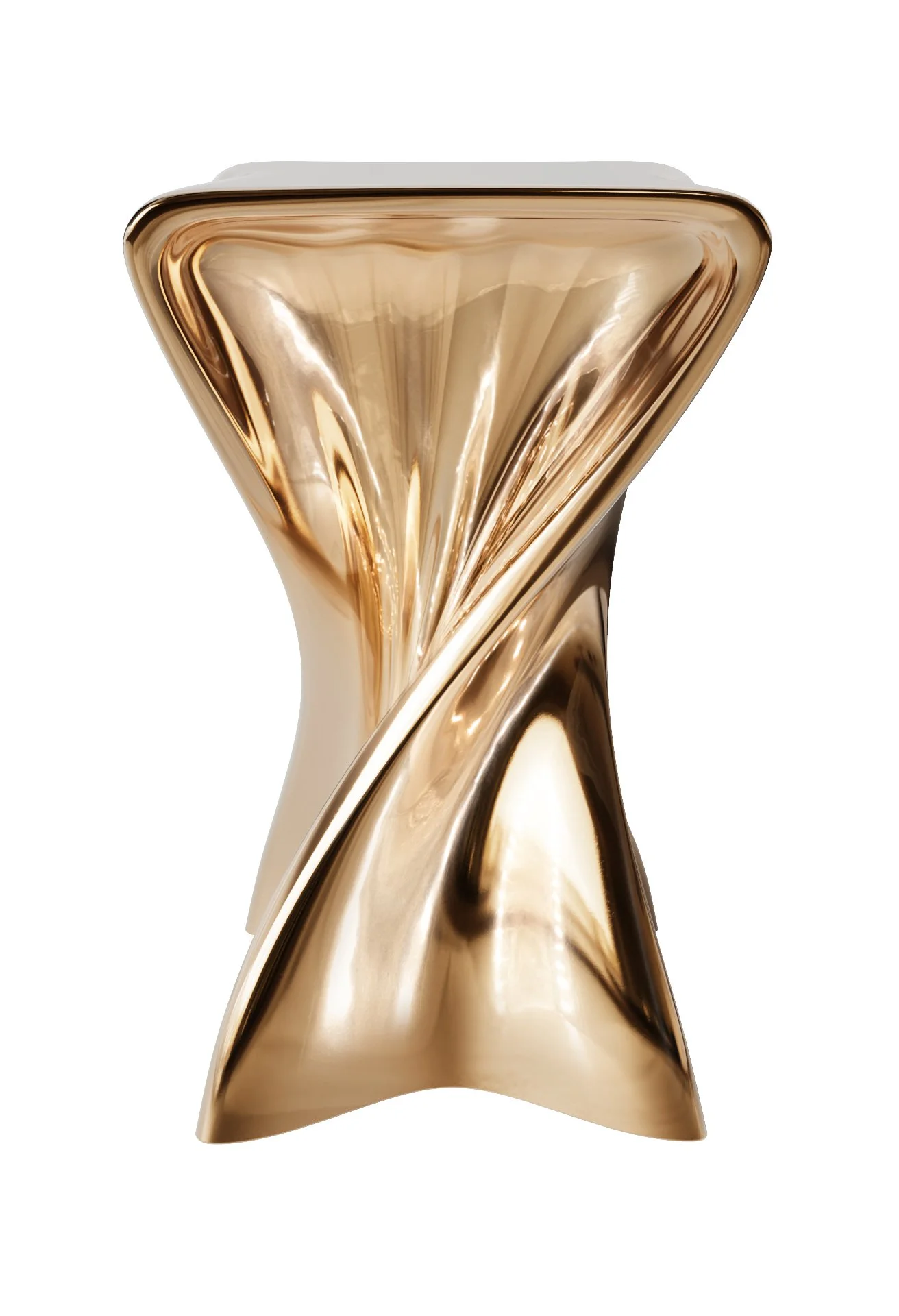 The inflection side table is hammer formed in bronze and hand polished. Derived as an exploratory computational design. Inflection points in differential geometry are the points of the curve where the curvature changes.